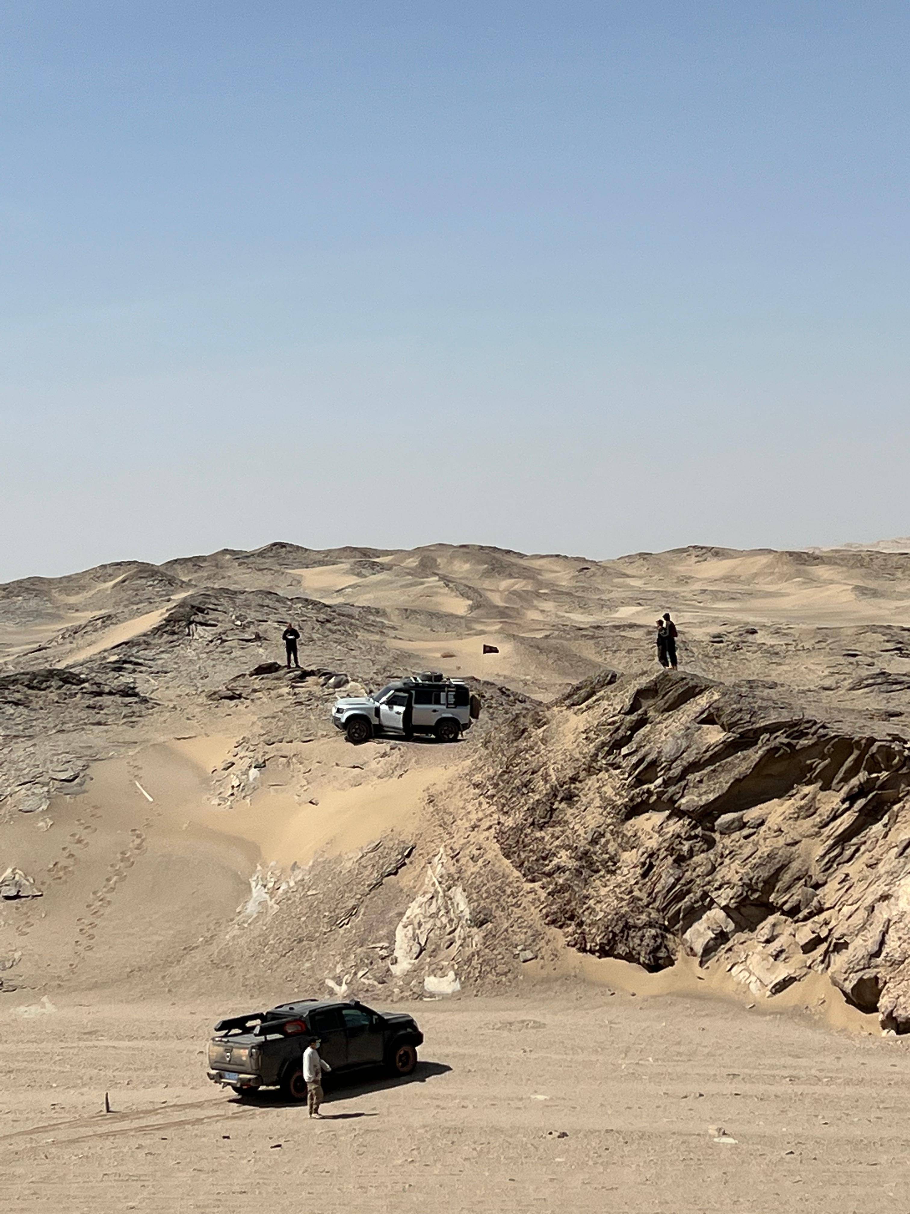 侧翻的地方刚好是一片软沙,其他车辆如果过去救它也会陷车。我们就下车想办法,最后还是领队冒着陷车的风险把车子开了过去,用绞盘和绳子拉,把车子拉正。当天晚上我们便在原地扎营,结果第二天醒来发现,三面都是沙山,想要原路返回,但返回的路沙子很软,需要有一定的距离提速冲出去才不会陷车。