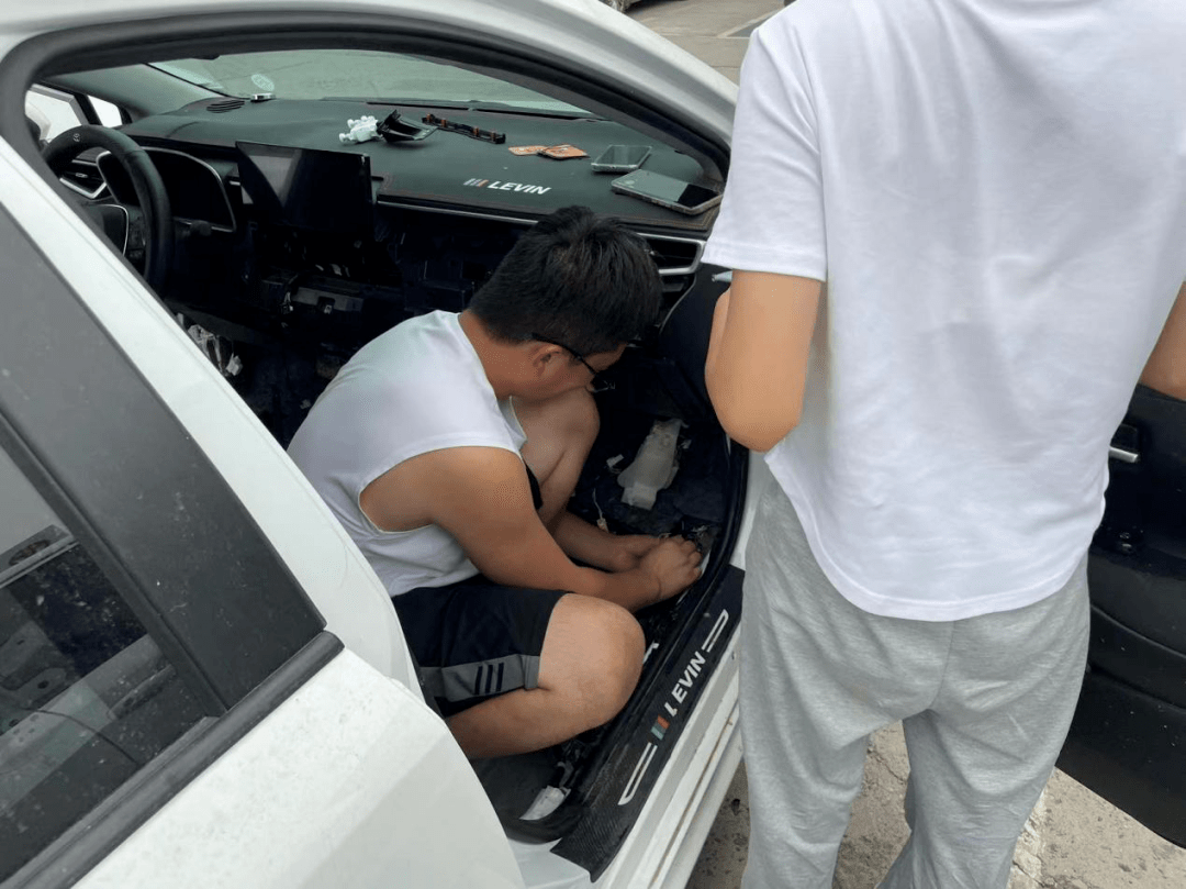 贝壳财经记者探访广丰4S店时已是下午3点半,一位看起来仍有稚气的维修师傅正在车里拆线束,而且已经拆了2个多小时。一旁的工作人员时不时拿着扇子给他降温。