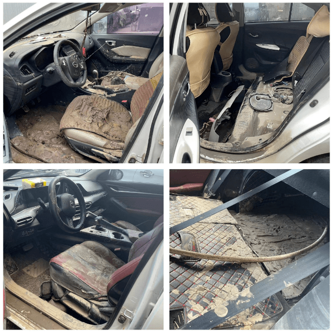 ▲一些车辆泡水比较严重,泥浆留在车内。新京报贝壳财经记者 白昊天 摄