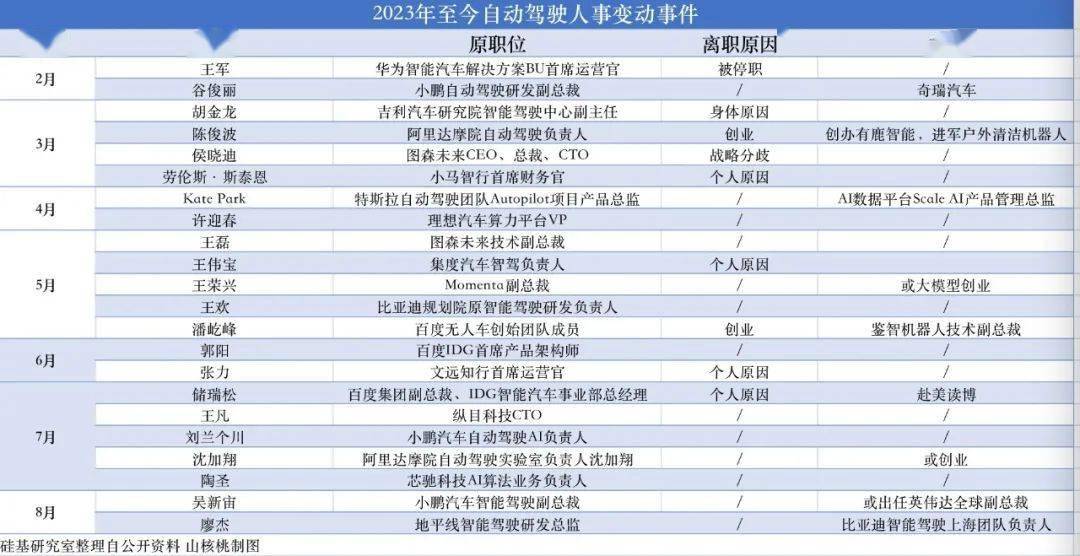 据「硅基研究室」统计,2023年至今,自动驾驶相关的高层人员离职事件就高达22起,其中不乏曾被资本捧在手心里的企业。