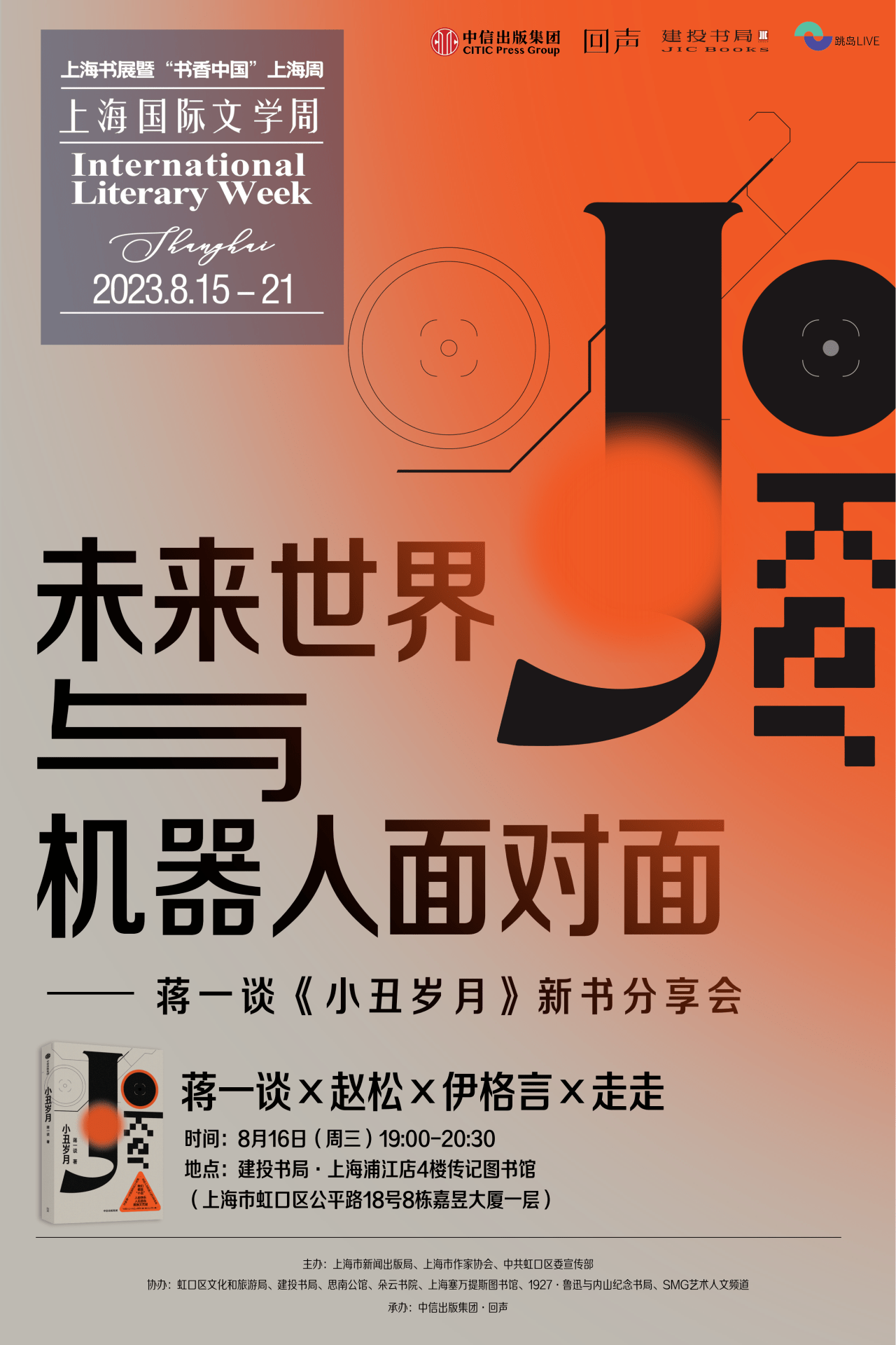 8月16日,建投书局联合中信出版集团,邀请到新书《小丑岁月》的作者蒋一谈,文艺评论家赵松,作家伊格言,与读者一同探讨未来世界中人与机器人的关系,从新书谈起,分享在新技术革命下科幻小说家如何反观人性、想象未来。本次活动属“上海国际文学周”系列活动,由作家走走主持。