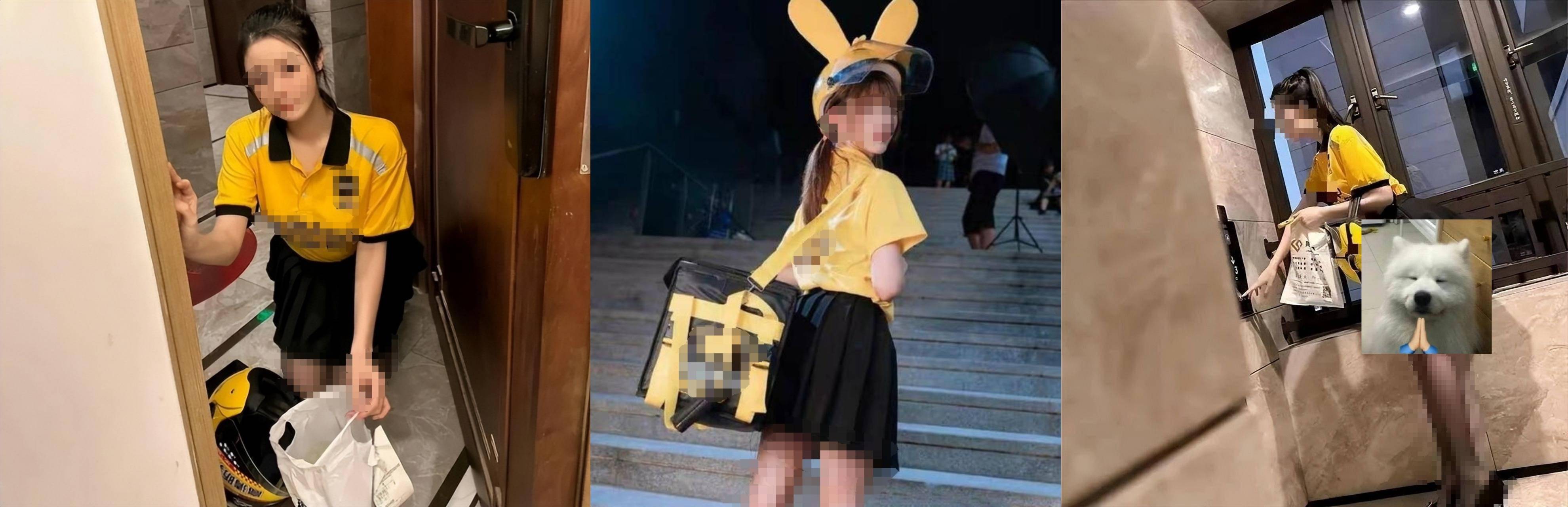 上身穿着外卖工服,下身穿着丝袜或短裙擦边擦边博眼球,严重损害骑手形象。