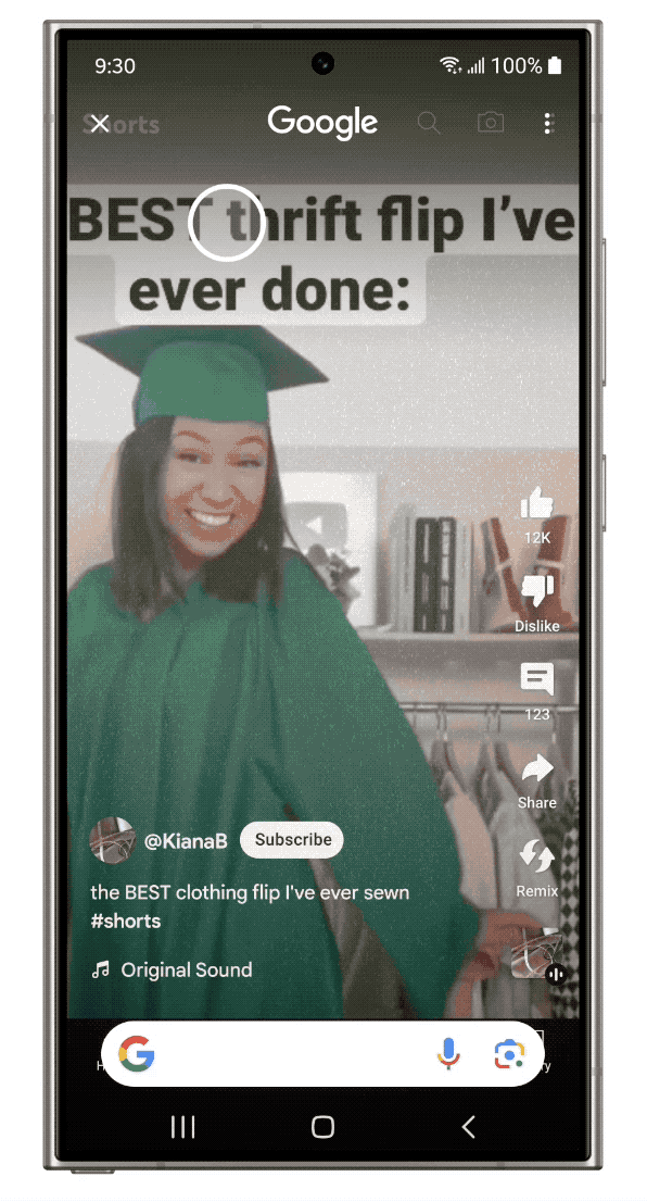 就是说,有了这个“Circle to Search”功能,刷着短视频,不用跳出,往屏幕上一划拉,直接就能对自己关注到的画面细节进行搜索。