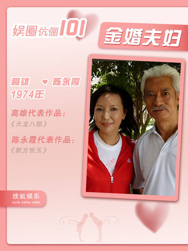 高雄和陈永霞是娱乐圈感情最稳定的夫妇之一。高雄算是一个大器晚成的演员,虽然很早就进入了演艺圈但是直到48岁出演《精武门》中的霍元甲一角,他才开始为人所知。但是尽管他出了名,但出演的角色却一直是配角。相比之下,他的妻子陈永霞就知名得多了。她22岁时就凭借《新方世玉》中的苗翠花一角一举成名,可谓是当时的女武打明星。然而90年代后,陈永霞就退出演艺圈,专心从事武术教练工作,如今的她已是国家一级教练。而高雄则一直在娱乐圈打拼,继续塑造配角形象。