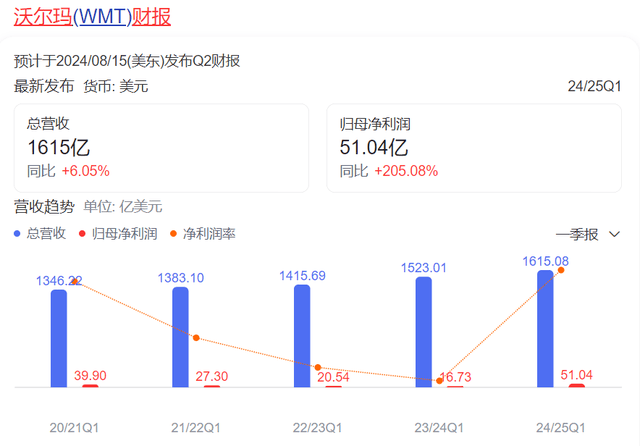 5月16日周四,沃尔玛公布了2025财年Q1业绩(截至4月26日)。
