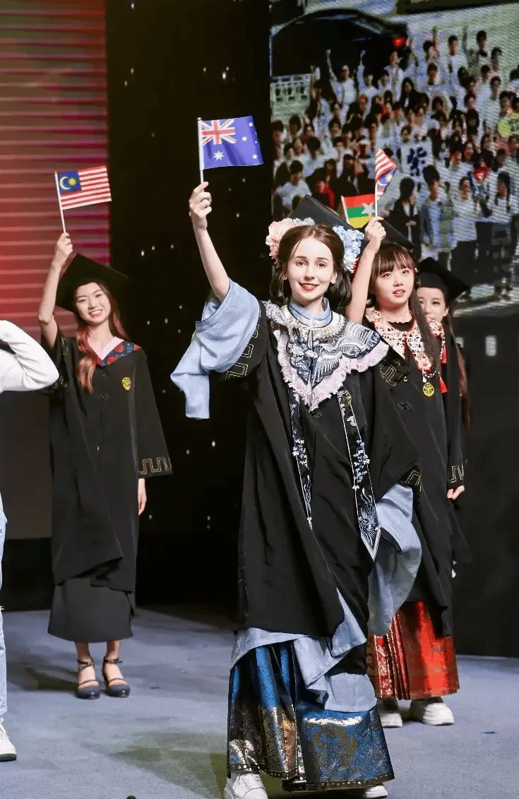 参加毕业典礼那天,她的肩膀停留了许多目光,也让世界看到中国的美。