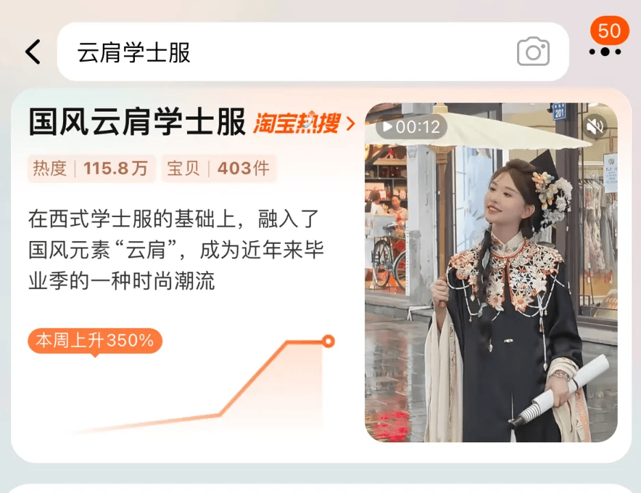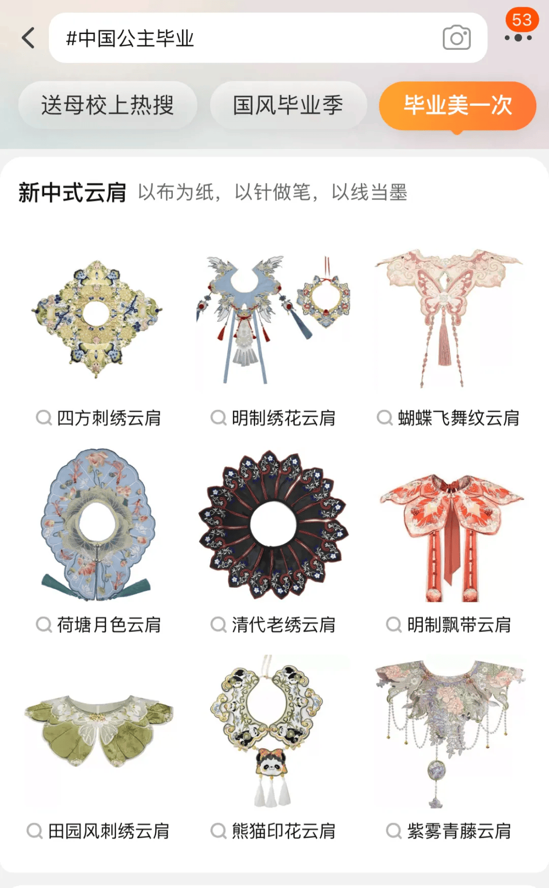 许多小年轻会去淘宝买各式各样的云肩搭配学士服。