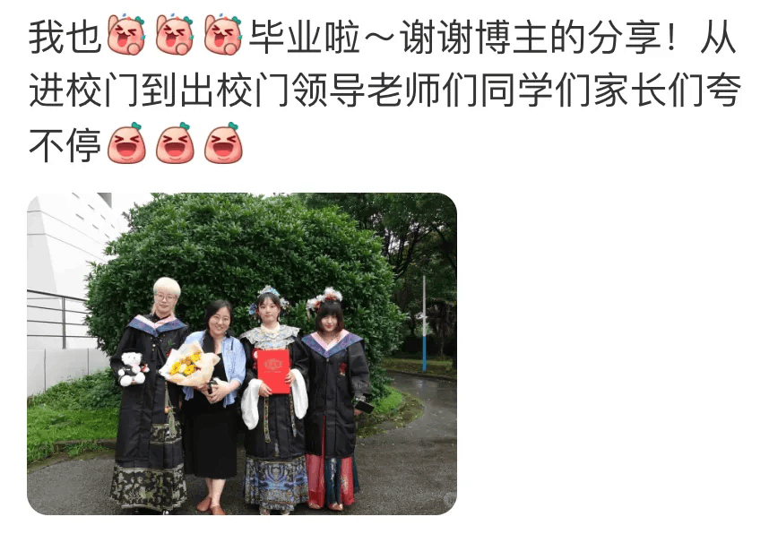 更有甚者,一些留学生也加入了国风式毕业穿搭。