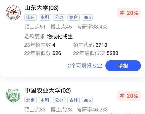 以我们前面提到的620分女孩,完全可以冲一冲中国农业大学、山东大学、吉林大学等。