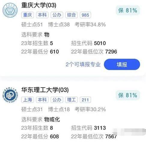 除此之外,还有很多保底报考院校,在专业的选择会有更多自主权。