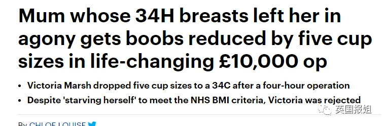 她甚至还开始大力宣传自己的故事,希望英国医保系统能将缩胸手术视为一种医疗必需品,而非一种“整容手术”。