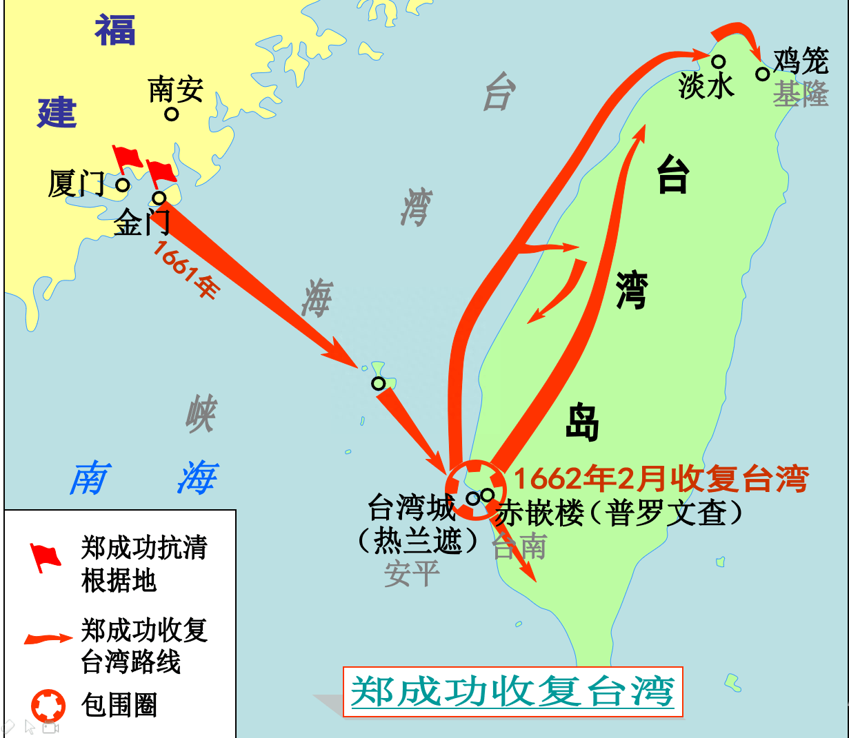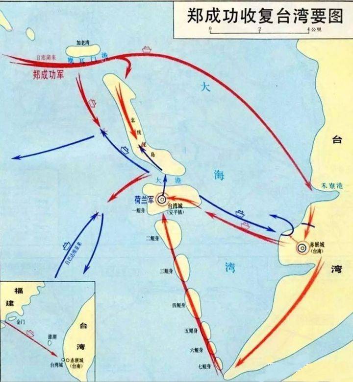 荷兰人见这里地势险要,就在港湾建造两座城堡,分别是其中城堡主要有两座,一座是大本营热兰遮城(台湾城),一座是普罗文蒂亚城(赤嵌城),两座城堡就是荷兰殖民台湾的据点,想要驱逐荷兰,就必须要拿下两城。
