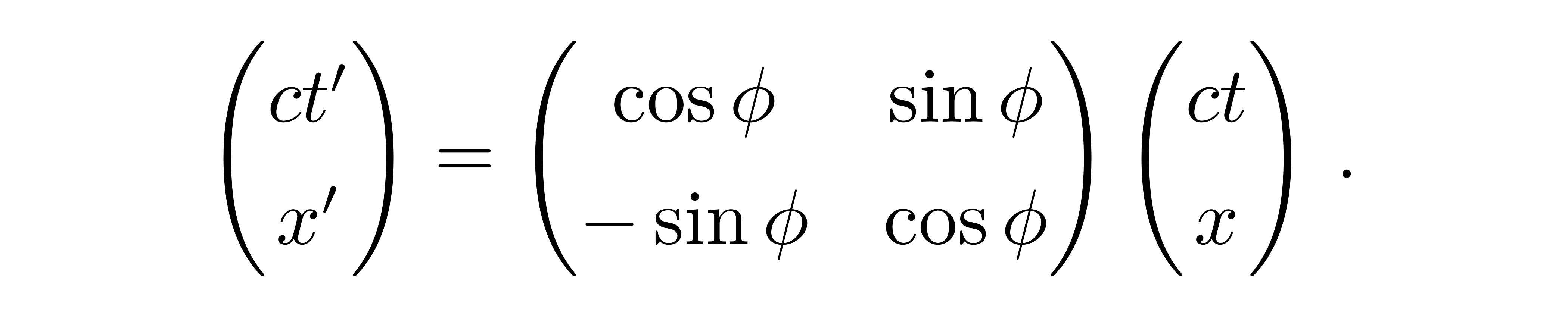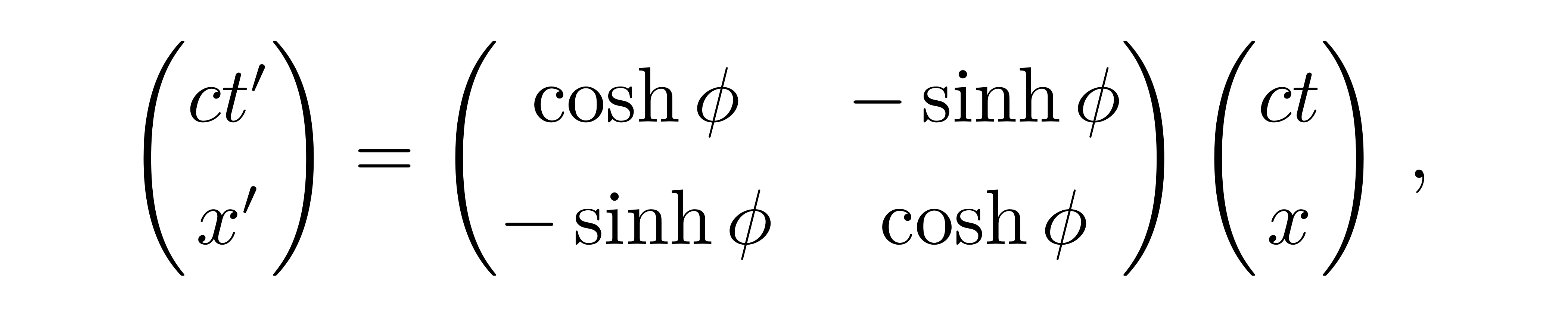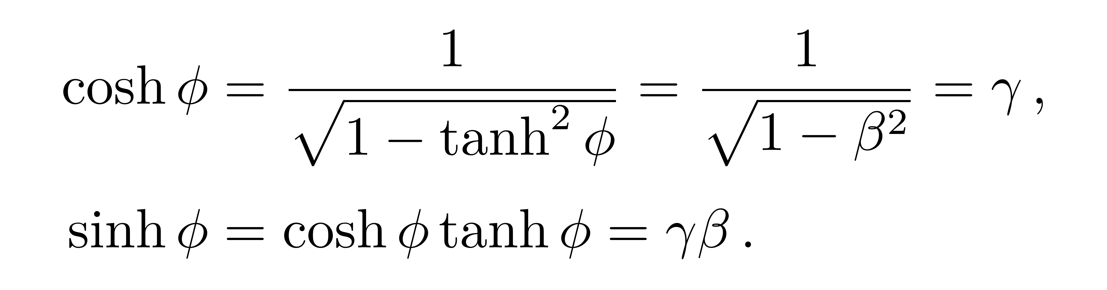 可以看出,欧氏空间中一个矢量在转动变换下是不变量。类似地,时空中的洛伦兹变换也是某种转动,称为伪转动。我们仍以2维为例,不同之处在于其中的一维是时间。此时表示不变量的时空间隔可用双曲三角函数展开