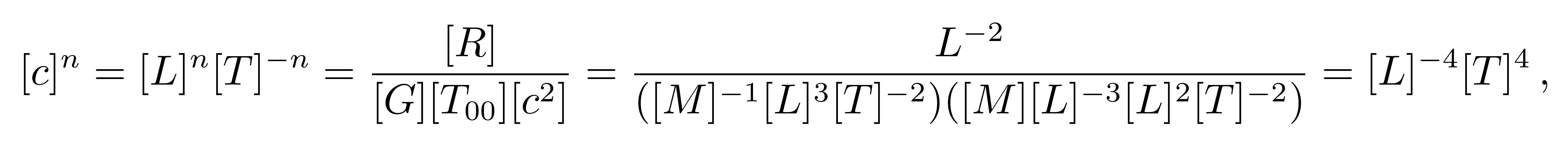 其中分母中的c平方来自于T00表示能量密度。从上式可以得到n=4,因此我们将光速c补上,得到完整的爱因斯坦场方程