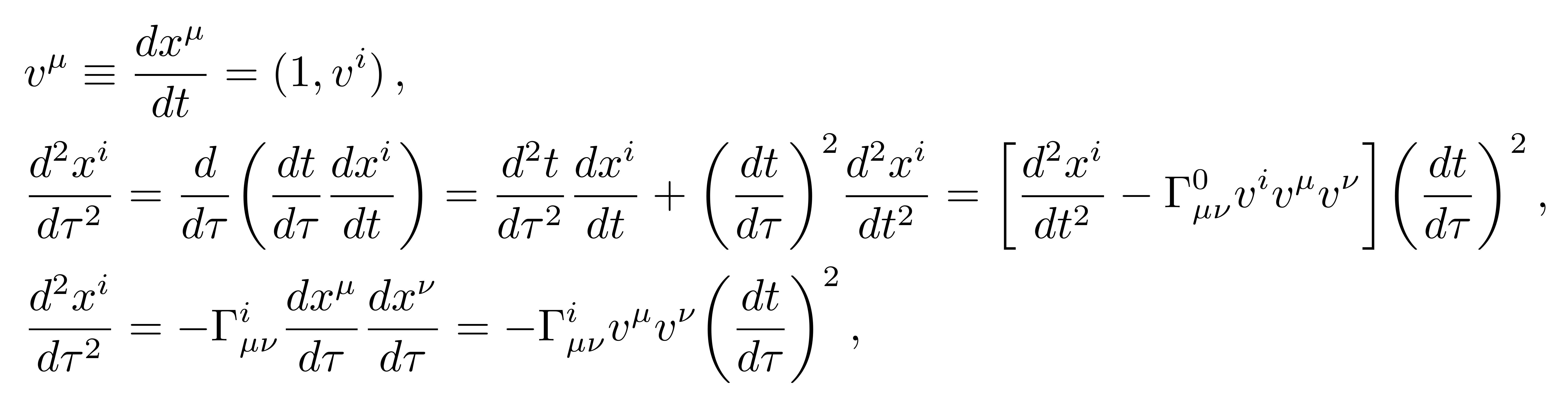 若此方程等于0,则定义了测地线方程,也就是弯曲时空中的直线: