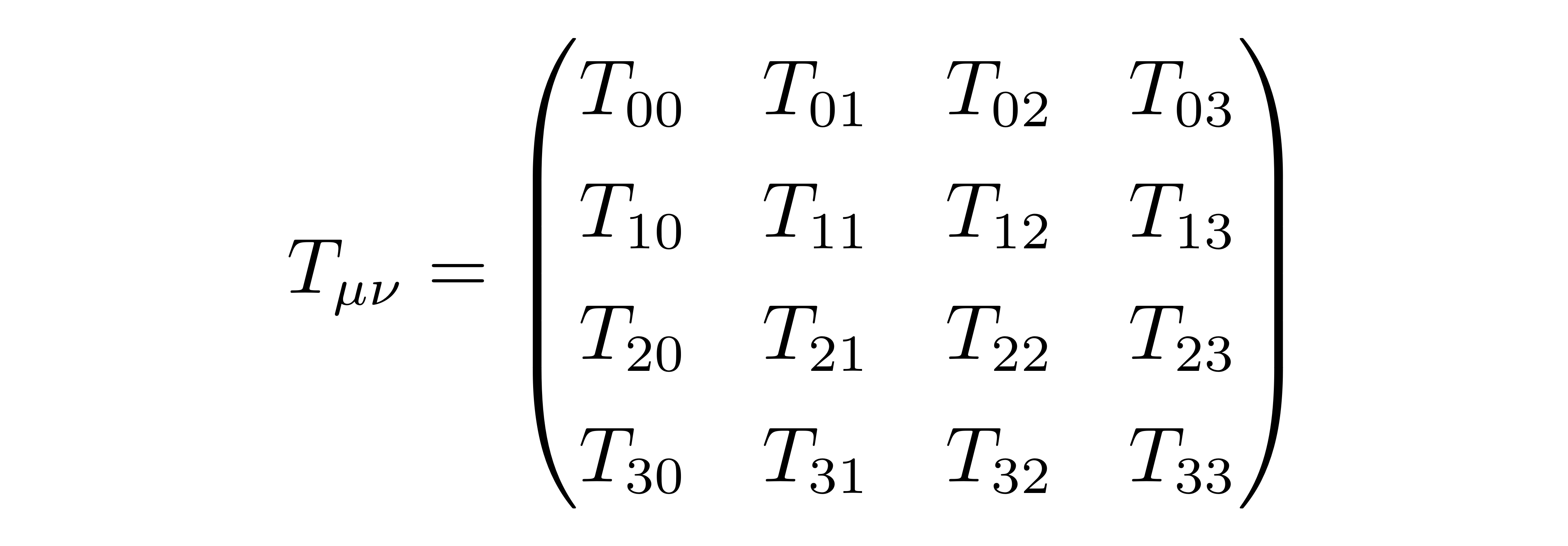 这里的00分量表示物质的能量密度ρ,0i分量表示沿空间i方向上的能流密度,ij分量代表动量密度的i分量在j方向上的变化率。因此可以猜测场方程的形式应该是