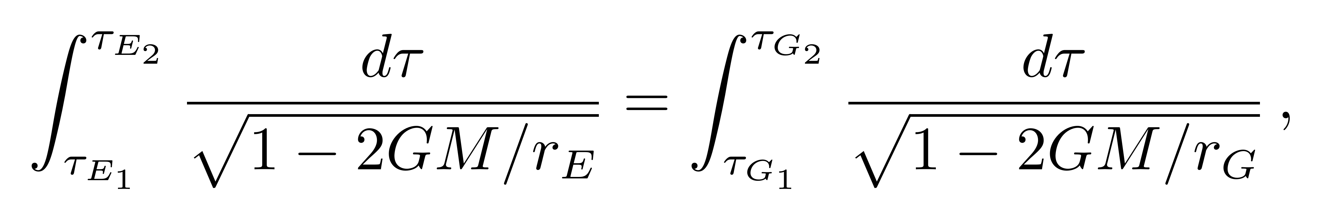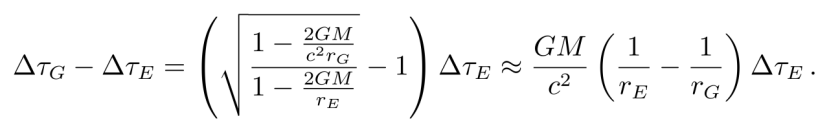 其中E表示地球赤道,G表示GPS卫星。由于赤道的高度和GPS的高度不会随着原时变化而变化,此积分的结果为