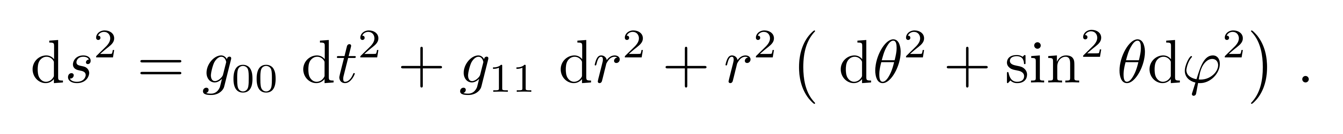 要求解度规,可先将度规的分量形式做一个假设,进而进一步推导其形式。因考虑的时空是静态球对称的,存在沿着t方向的对称性和SO(3)对称性,所以度规的分量不会含有时间和角度,度规分量只可能是描述距离r的函数。静态时,存在沿着t方向的对称性,而且可让度规写成如下形式