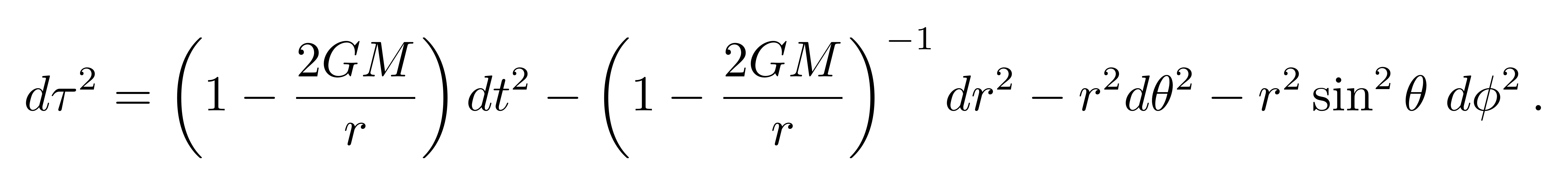满足真空爱因斯坦方程的静态球对称度规称为史瓦西真空解(Schwarzschild vacuum solution),简称史瓦西解,在物理上描述一个球对称恒星(如太阳)的外部引力场。我们将真空爱因斯坦场方程用度规缩并,得到
