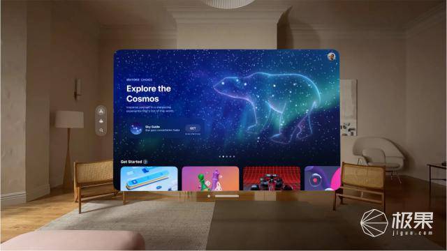 它混合了虚拟与现实,所有的现实影像都是即时采集并渲染而成,所以你可以很轻易地在虚拟画面和现实画面间流转,这也是为什么苹果将它定义为空间计算设备——你的房间、你的整个空间都是互动界面。