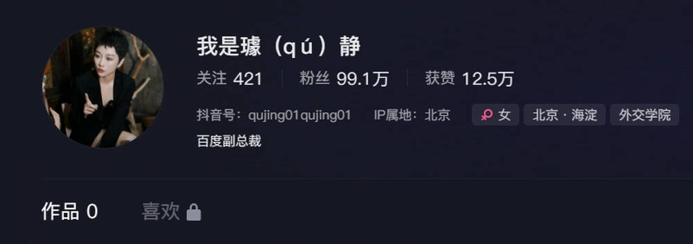 5月7日,璩静清空了抖音号上的全部视频。5月9日,璩静更新短视频账号,内容是其的道歉声明。目前,璩静的抖音账号粉丝数近百万。